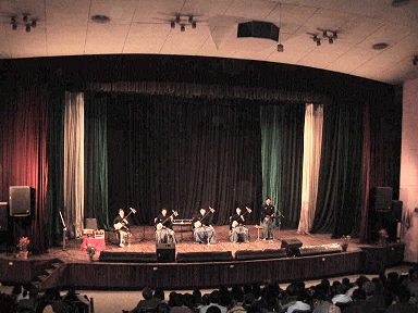 | 13:30会場に到着後、楽器セットをし、音響チェック・リハーサルと進んでいきました。17:15開演。約70分のコンサートを終了。「大地の乱れ舞」の脩市郎soloや、上遠野solo、佳市郎soloは、客席に出て行き、お客さんの目の前で弾くというパフォーマンスもありました。大変盛り上がり、ネパールの歌も大盛況でした |