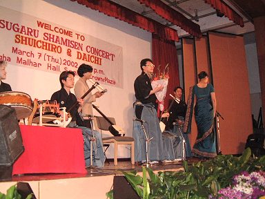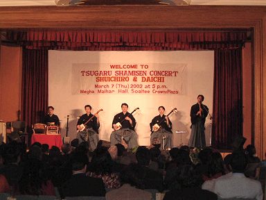 12:30ホテルで中華料理を食べ、13:30にホテルソルティーのホールに入り、14:00からリハーサル開始です。開演時間は昨日と同じく17:15でした。 今日はVIP席も設けてあり、昨日の公演より少し長く演奏をして頂きたいという大使館側からのご要望に応え、「津軽五大組曲」をメニューに追加して演奏する事にしました。 本番はここでもとても盛況で、特に「大地」の演奏ではこのツアー一番の出来と自負する演奏が出来ました。 |  |